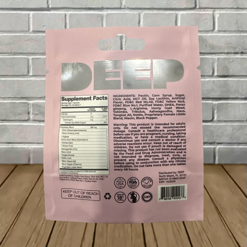 Did you enjoy the fast-acting and highly effective formulation of DEEP’s chews but have issues swallowing pills? These female enhancement gummies have you covered!