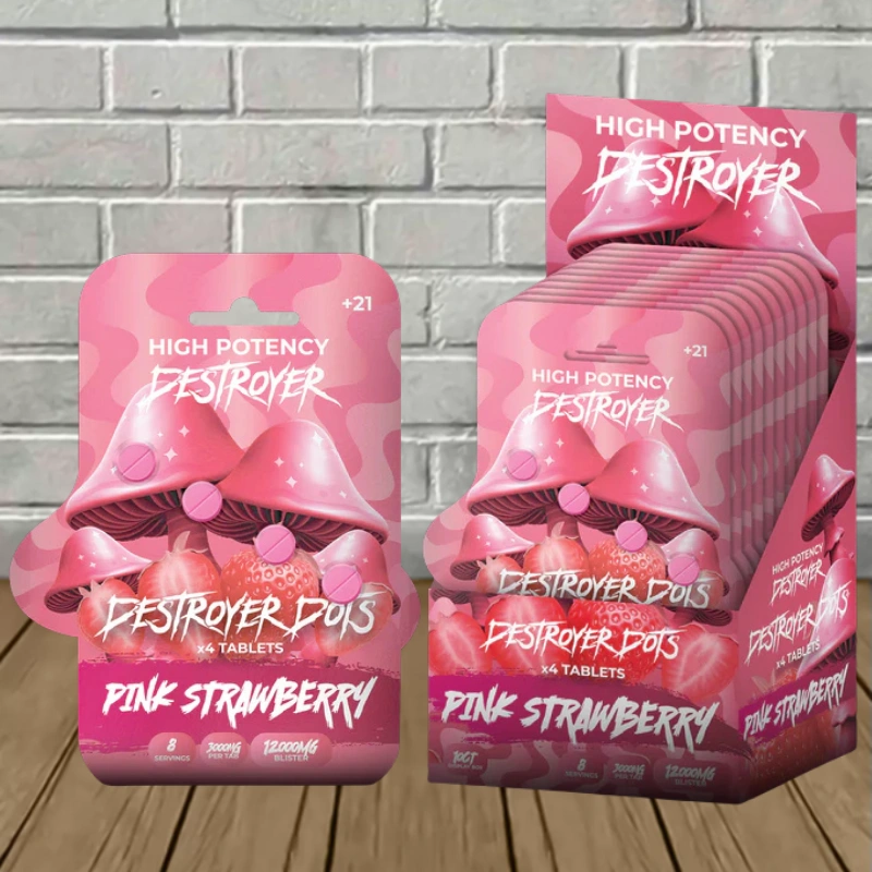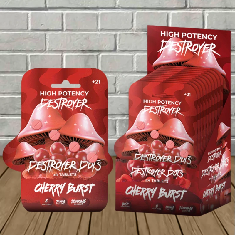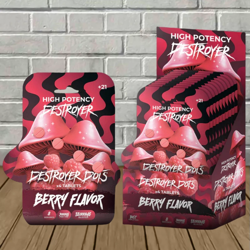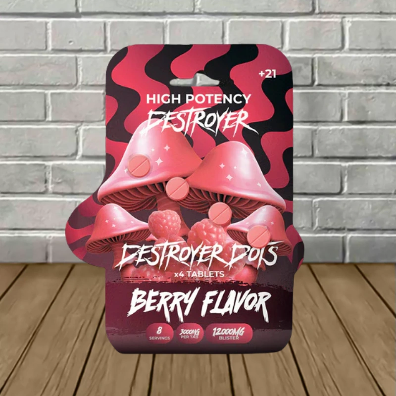 Destroyer Dots High-Potency Mushroom Tablets 12000mg deliver 3000mg per tablet across 4 perfectly dosed tablets per pack, giving you a reliable, consistent mushroom experience every time.