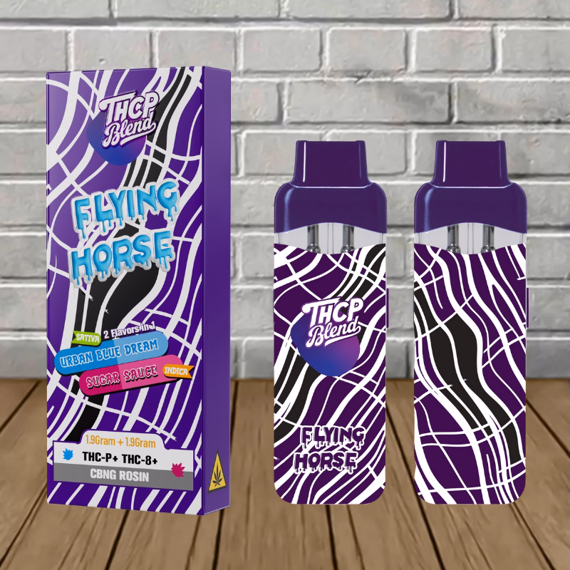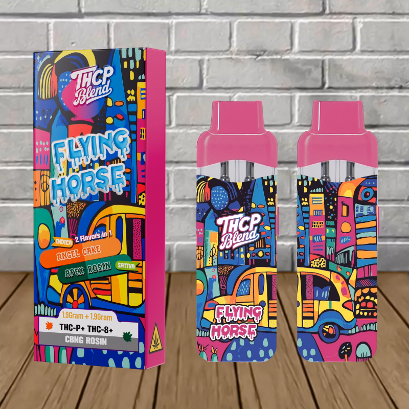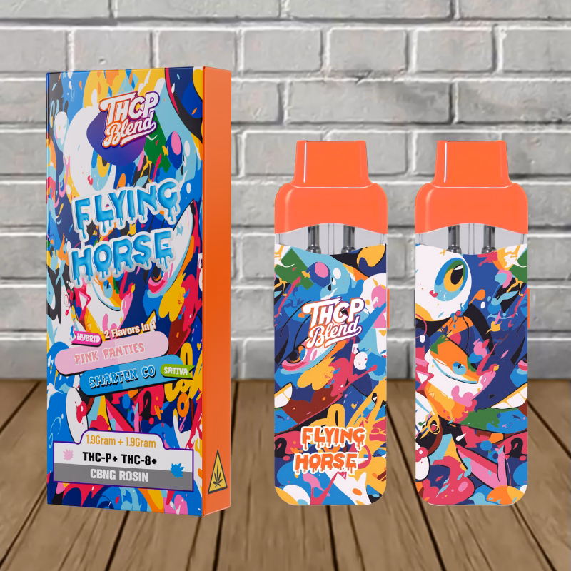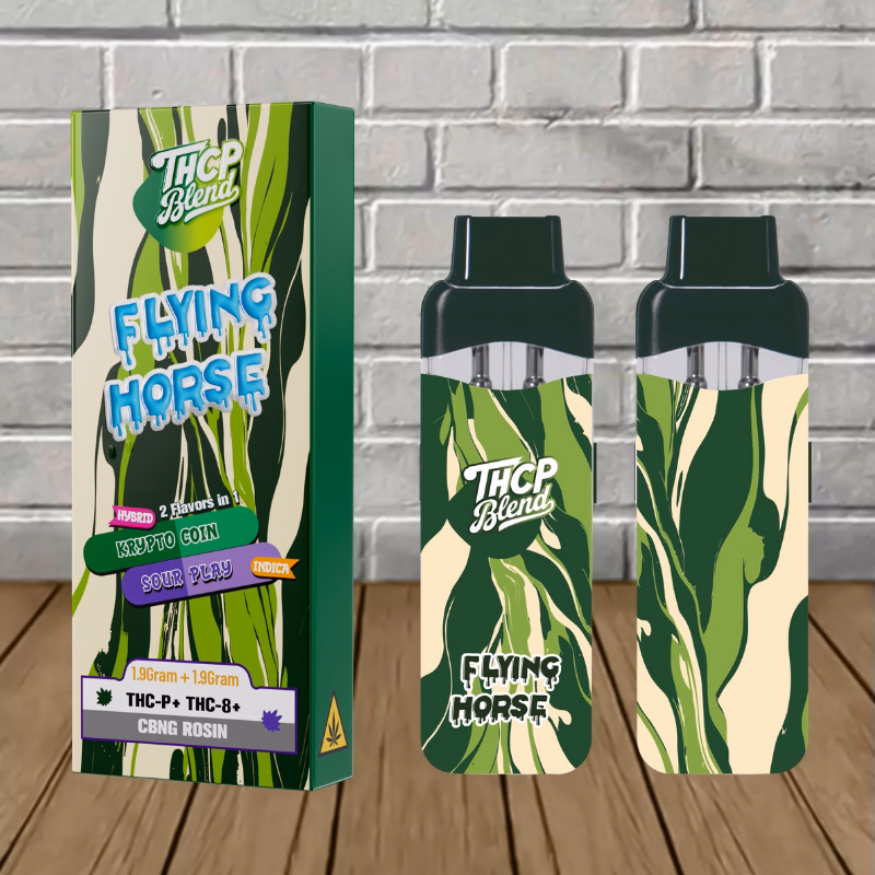This dual blend combines THCp, Delta-8, and CBNG rosin for a full-spectrum effect. By blending cannabinoids, the Flying Horse THCp Dual Flavor Disposable Vape 3.8g delivers more powerful effects than single-strain options. Therefore, you can expect bold performance, smooth hits, and consistent potency across every chamber.