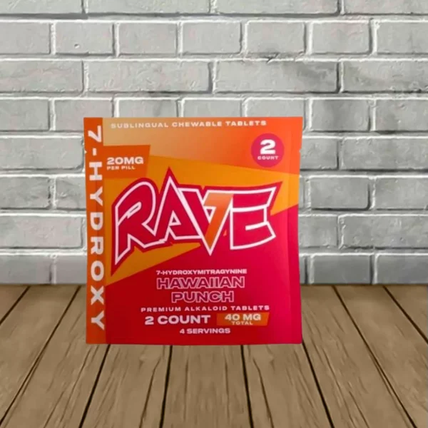• Get fast, powerful relief with the Rave 7-Hydroxy Hawaiian Punch Chewable Extract Tablets 20mg.