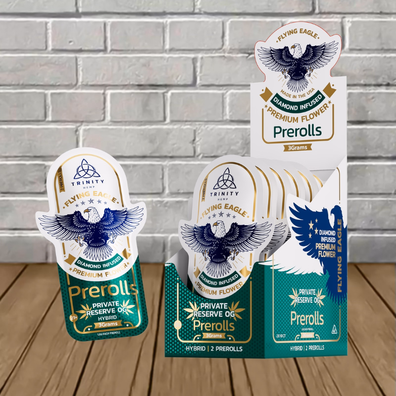 The Trinity Hemp Flying Eagle prerolls offer a variety of flavors and effects to suit your mood.