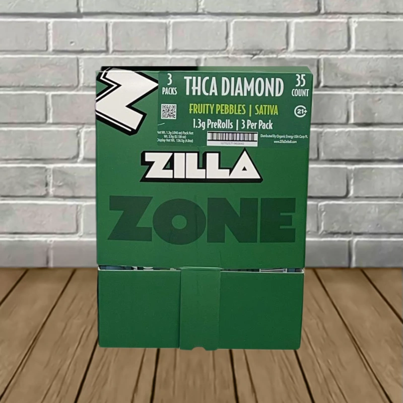 Zilla THCa Diamond Prerolls 3ct x 1.3g, totaling 3.9 grams, and deliver high-potency, smooth-smoking experiences. Choose from three premium strains: OG Kush (Indica), Fruity Pebbles (Sativa), and Cherry Gelato (Hybrid). Whether you’re unwinding after a long day or sharing with friends, these offer a premium experience.