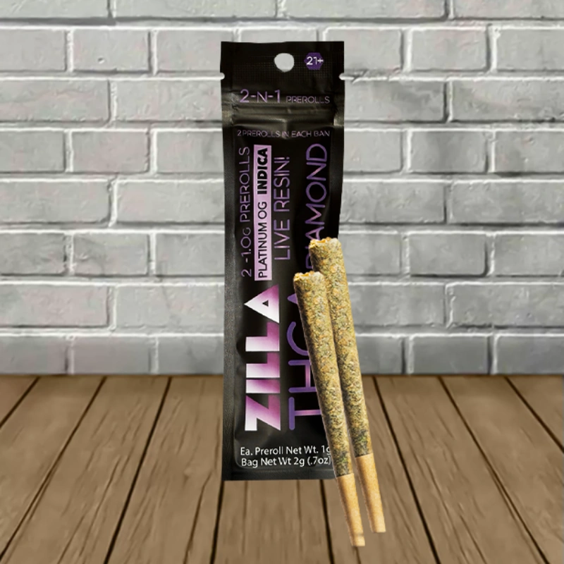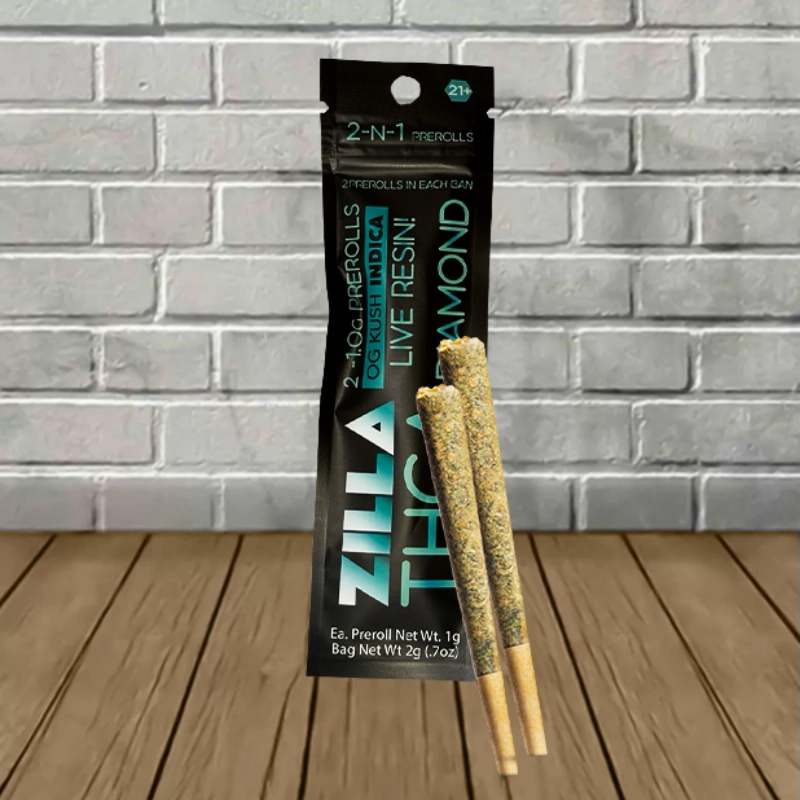 Zilla THCa Live Resin Diamond Prerolls 2ct x 1g