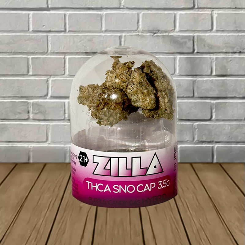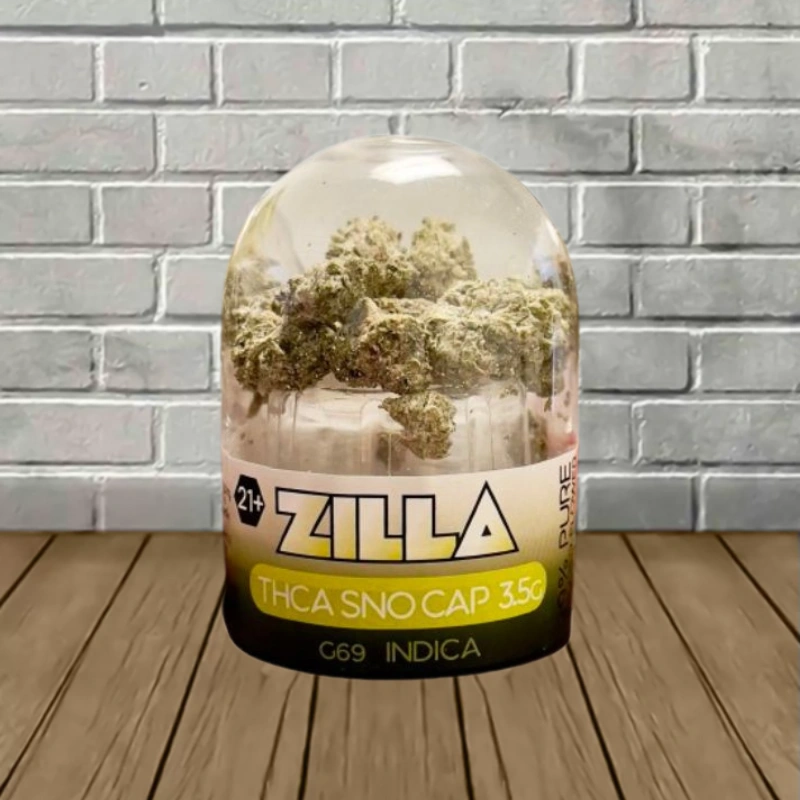 - 3.5g jar of Zilla THCa Sno Cap Flower per jar